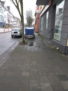 Dies gilt natürlich für alle Fahrzeuge mit Nummernschild dran. Auch für den, auf diesem Bild gezeigten unzulässig geparkten Anhänger.
