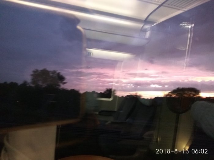 Manchmal gibt es echt schöne und künstlerische Bilder, die entstehen können. Wie etwa dieses aus einem ICE heraus, wobei natürlich die Scheibe für Reflektion sorgt und somit ein geisterhaftes Inneres eines ICE entsteht.