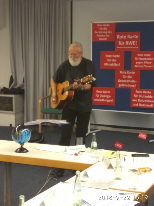 RWE: Neben den klassischen Themen zu RWE, wie die Vernichtung von Wohnraum und Umwelt durch RWE, gab es auch weitere Themen, die auf der Versammlung angesprochen wurden. Etwa die ungleich brutaleren Bedingungen an einem Tagebau in Kolumbien, wo die indigene Bevölkerung brutal vertrieben wird. Mal ganz abgesehen von der ökologischen Katastrophe, welche damit einhergeht. Die Blutkohle ist übrigens nicht nur bei RWE ein Thema, sondern auch bei der STEAG und damit hier in Duisburg, denn diese wird sicherlich auch in Walsum verbrannt. Außer Frage stand natürlich für alle, dass man Braunkohle austreten muss.