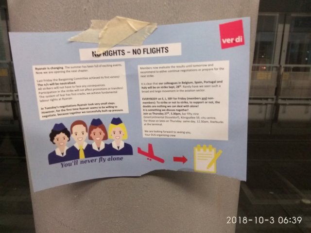 Neulich am Düsseldorfer Flughafen sah ich folgenden Flyer von Verdi und den Spruch No Rights, no Flights finde Klasse. Ausbeutende, die Arbeitnehmerrechte beschneiden, müssen auf die harte Tour lernen, was Recht ist.