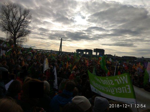 Es war eine beeindruckend große Menschenmenge gestern in Köln. Medien sprechen hier von 20 000 Menschen, die trotz des Wetters alle zur Deutzer Werft gekommen waren. Die Veranstalter hatten mit weniger Beteiligung gerechnet, weshalb es auf der Wiese eng wurde. Und nicht nur dort, später bei dem Umzug durch die Stadt war die Menschenmenge sogar so groß, dass das Ende und der Anfang zusammen stießen. Fast könnte man meinen, dass dies geplant war, denn der Kreis ist das Symbol, was die größte Nachhaltigkeit zeigt. Etwas was die Politik schon seit langem vermissen lässt. Angefangen bei der Versagerpolitik um den Dieselskandal, aber auch bei der Helikopterpolitik bzgl. Kohle.