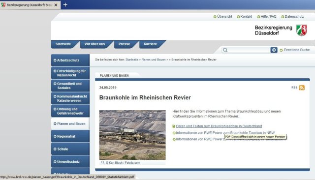 DEBRIV, scheinbar der Lügenverband für Braunkohle, darf auf der Seite der Bezirksregierung Düsseldorf werben.