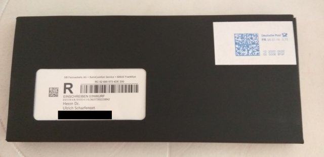 Zumindest sollte es die Option geben zu sagen, mir reicht ein einfacher Umschlag. Dann spart man zumindest etwas, bei der völlig überteuerten Fahrkarte.