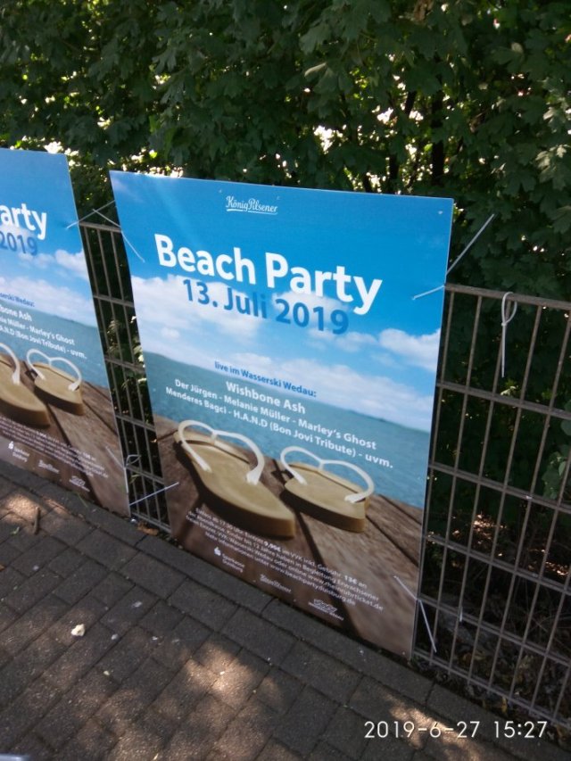 Vor einigen Wochen sah ich folgende Wildplaktierung für eine Beachparty in Wedau:
