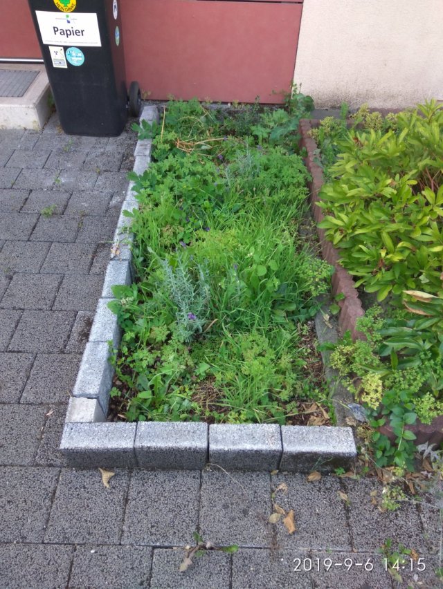 Statt immer nur über Steingärten zu jammern, welche die Stadt aufheizen, dachte ich mir etwas dagegen zu tun. Sprich eine eigentlich nicht genutzte Fläche vor dem Haus sollte von gefplasterter Fläche zu einem Beet umfunktioniert werden.