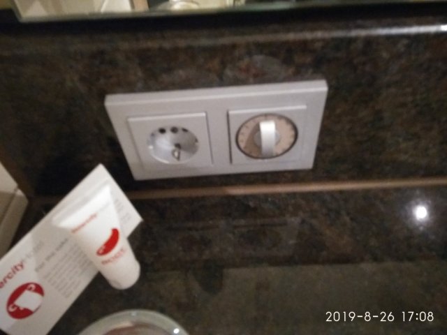 Die auf dem Bild zu sehenden Steckdose hat eine Zeitschaltuhr. Was auf den ersten Blick etwas seltsam erscheint, dient dem Hotel dazu Kosten zu senken, denn Geräte, welche den ganzen Tag am Netz hängen verbrauchen viel Strom. Durch die Zeitschaltuhr lädt das Gerät nicht unbegrenzt. Die wäre beispielsweise auch für Badezimmer geeignet oder falls man ein anderes Gerät aufladen will. Bisher habe ich so eine Steckdose aber noch nicht im Handel gesehen.