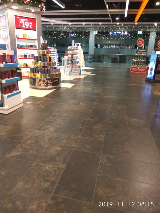 Abgesehen von den erheblichen Brandlasten links und rechts vom Fluchtweg, ist der Flucht als solcher auch nur schwer zu erkennen, denn vor den Hinweisschildern hing eine Lichterkette, welche die Erkennbarkeit erschwert. Ich kann mir nicht vorstellen, dass dies eine ausreichende Erkennbarkeit nach ASR A1.3 hat. Man sollte eigentlich annehmen, dass der Flughafen aus den Fehlern und den Toten gelernt hätte.