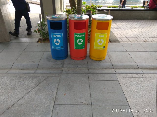 Mal wieder einen Blick über den Tellerrand. Es gibt Stellen, wo es öffentliche Mülltrennung gibt. Das Bild zeigt entsprechende Behälter in Singapur, aber auch die Deutsche Bahn hatte solche Behälter aufgestellt. Ich frage mich, ob die Behälter der Bahn wirklich getrennt entsorgt werden. Im Zug habe ich häufig den Eindruck, dass alles in den selben Sack gestopft wird.