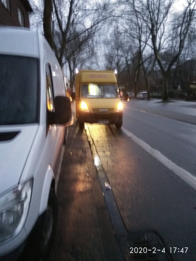 In letzter Zeit habe ich häufiger über Verkehrsbenachteiligung von Radfahrenden berichtet und DHL erwähnt. Um es vorwegzunehmen, wäre die Auflösung der Bilder besser gewesen, würde ich nicht nur darüber schreiben, sondern DHL bekäme von der Stadt Duisburg auch ein Bußgeld.