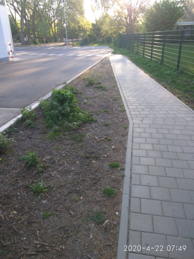 Der hier erkennbare Streifen war mal bepflanzt mit Heckenpflanzen. Tausende sind hier langetrampelt und haben die Pflanzen zerstört. Mit Zaun wäre das nicht passiert, aber da man dies den Menschen überlassen hat, sind die Pflanzen tot.
