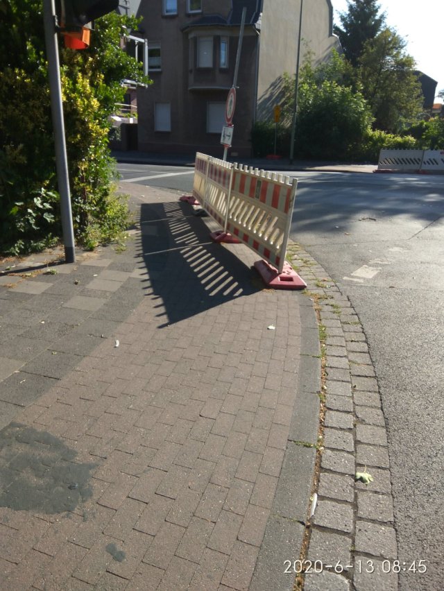 An der Einmündung in die Asterlager Straße ist der Fußübergang grundlos mit Sperrbaken versehen. Auf der Kreuzung selber finden keine Bauarbeiten statt, sondern erst ein ganzes Stück die Moerser Straße runter. Deswegen eine Kreuzung für Rad- und Fußverkehr zu sperren ist irrsinnig und gefährdet zumindest den Radverkehr, weil dieser auf eine viel befahrene Straße ausweichen muss.