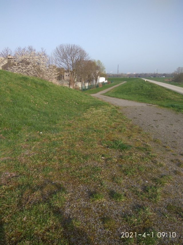 Abbildung: Deich bei der Kläranlage mit Deichverteidigungswegs und schmalem Weg
