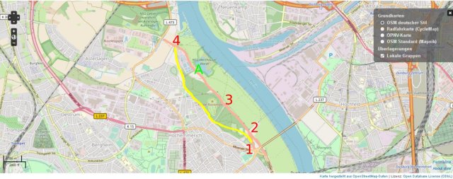 Der rote Verlauf ist der m.W. derzeit diskutierte Verlauf, der allerdings auch erhebliche Einschränkungen und Probleme mit sich bringt, mal abgesehen davon das er einen Erholungsraum zerschneidet.