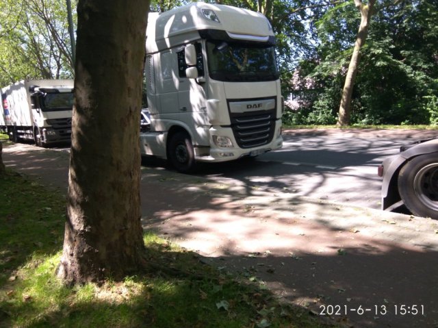 Die LKW, welche dort parken wurden vorher an anderer Stelle verdrängt. Es ist offensichtlich, dass Verdrängung keine Lösung ist. Die zugezogenen Vorhänge in der Fahrerkabine belegen zudem, dass vor Ort geschlafen wird. Das EU-Recht scheint hier nicht greifen.