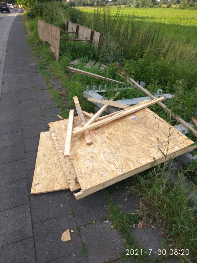 Sowohl Gehweg, wie auch Radweg wurden unnötig mit Baustellenschildern, – Einrichtungen und Gerümpel vollgestellt. Kontrolliert das niemand von der Stadt? Warum gibt es eigentlich bei so einem rücksichtslosen Verhalten keine Vertragsstrafe? Kann doch nicht sein, dass die Stadt Duisburg hier immer brav bezahlt und selbst die Hühneraugen zudrückt. Aber vermutlich gibt es in Duisburg nur eine Vertragsstrafe für jene, welche den KFZ-Verkehr beeinträchtigen. Für Radverkehr hat die Stadt Duisburg nichts übrig. Und die Wirtschaftsbetriebe haben sich auch erst nach einem Hinweis darum gekümmert. Angeblich zumindest, kontrolliert habe ich es noch nicht.