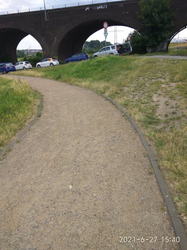 Wie man immer wieder feststellen kann wird geltendes Recht in Duisburg nicht oder unzureichend durchgesetzt. Besonders bei KFZ scheint mir hier wenig Lust haben die Einhaltung der Verkehrsregelung konsequent durchzusetzen. Neben diversen Verkehrskriminellen, die auf Geh- und Radwegen parken oder in Halteverboten gibt es da auch noch Bereich im Rheinvorland, wo zumindest am Wochenende massenhaft PKW parken. In einem der als Schutzgebiet gekennzeichnet ist und nach dazu mit einem Einfahrverbot versehen wurde. Trotzdem stehen da immer KFZ, wenn man mal da vorbei kommt. Das Foto zeigt das Gebiet direkt neben der Eisenbahnbrücke.