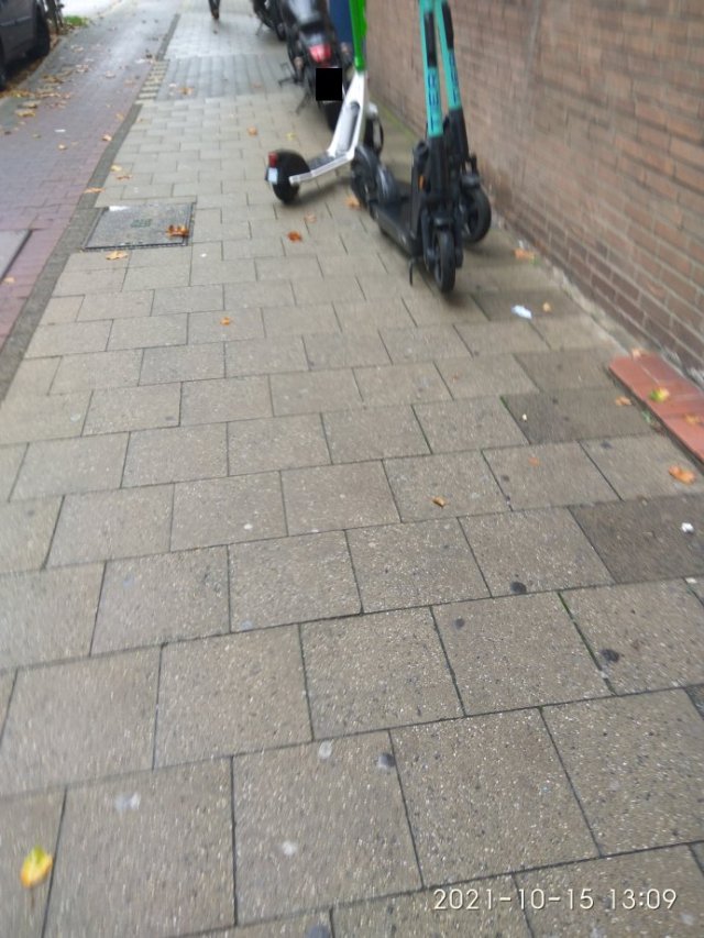 Neben den Escooter, fielen aber auch im Bereich S-Bahn Derendorf /Mörsenbroicher Ei Roller und auf dem Gehweg parkende PKW auf. Man sollte hier keinesfalls mit zweierlei Maß messen. Auch PKW sind ein massives Problem.