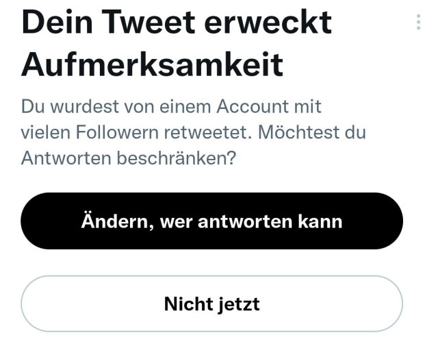 Du wurdest von einem Account mit vielen Followern retweetet. Möchtest du Antworten beschränken?“