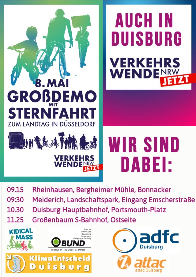 Treffpunkte und Zeiten für die Teilnahme an der Sternfahrt von Duisburg aus.