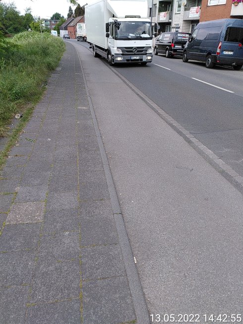 trotz meines Schreibens vom 23.02.2022 musste ich heute erneut das rechtswidrige Befahren des Radweges durch einen LKW erleben, der es so eilig hatte, dass er nicht mehr den entgegenkommenden LKW abwarten wollte.