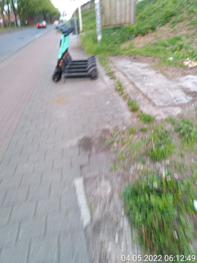 Letztens am Bahnhof Rheinhausen Ost sah ich direkt mehrere von diesen E-Scootern den ganzen Gehweg blockieren, also Falschparken auf Gehweg mit Behinderung bzw. Stolpergefährdung. Wer bekommt da eigentlich die Punkte nach meiner Anzeige wegen multiplen Falschparkens? Ich nehme mal an, dass jemand von der Firma beauftragtes verantwortlich ist.