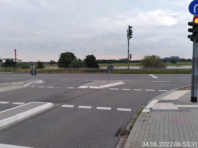 Nun kann man sich die Qualität einer Abbiegeregelung beim ehemaligen Hornitexgelände anschauen. Dort soll verhindert werden, dass LKW nach rechts abbiegen.