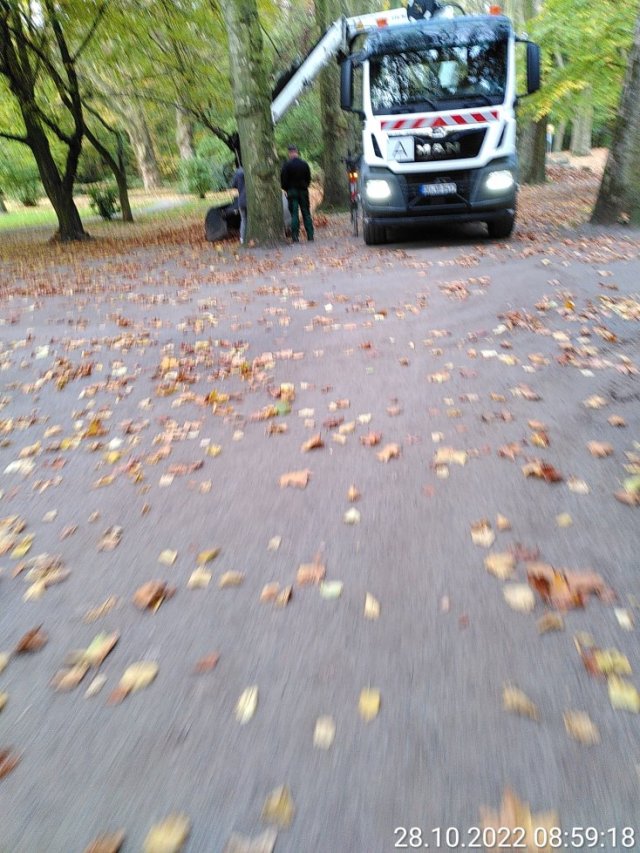 Währenddessen sah am Freitag eine Woche davor, wie die WBD den Stadtpark von Laub befreiten. Oder wie ich es nenne den Wald kehren. Bei Wegen im Park ist es natürlich gut, wenn diese frei von Laub sind, aber abseits der Weg Laub zu entfernen hat gar keine Priorität. Verkehrswege und insbesondere Gehwege und Radwege müssen Priorität haben.