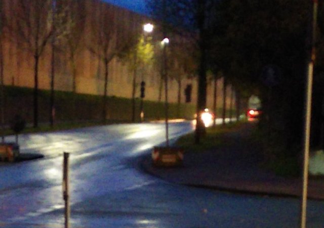 An der Friedrich-Alfred-Straße wird der halbe Radweg blockiert ohne Beleuchtung des Hindernisses.