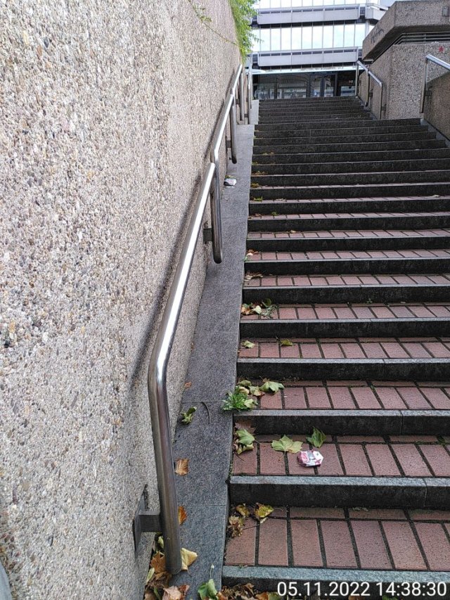 Zur Abwechselung mal etwas Positives aus Duisburg. Am Goerdeler Park am HBF befindet sich zumindest an einer Stelle eine Fahrradrampe an der Treppe. Das heißt man ist nicht auf technische Hilfsmittel angewiesen und muss das Fahrrad auch nicht tragen.