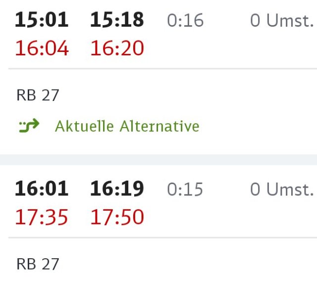 Gleiches Spiel auch mit dem theoretisch um 16:01 fahrenden, der erst viel Verspätung hatte