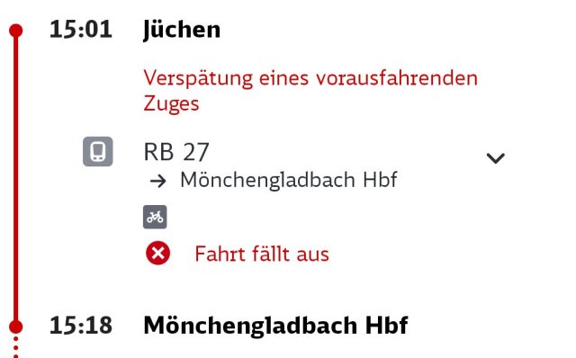 Dies belege ich nachfolgend mal an dem Beispiel Jüchen. Dort stand ich nämlich ziemlich lange weil die Bahn mies informierte. Züge wurden immer wieder angekündigt und fielen dann Plötzlich aus. Es war eine richtige Verarsche Seitens der Bahn und das ist ärgerlich, weil man ständig vertröstet wird.