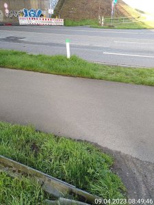 Der Bereich ist, soweit ich das erkennen kann, außerhalb der geschlossen Ortschaft. Dort gilt als für gemeinsame Geh- und Radwege eine Breite von mind. 2 m in eine Richtung. Allerdings ist die Stelle auch eine Umleitung für eine andere Route.