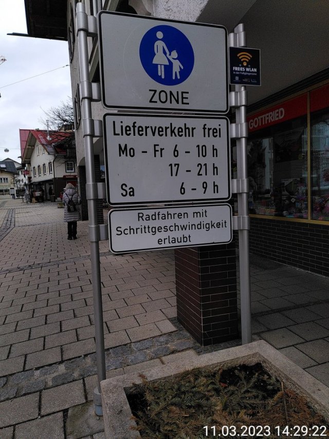 – Könnte man dann dem Fahrrad frei Schild eine neue Bedeutung geben, in dem die Schrittgeschwindigkeit aufgehoben wird. Gibt m.M. nach Gehwege, wo die Fußgänger 100% Vorrang haben sollten, aber wo die Fußgänger nur zu bestimmten Zeiten unterwegs sind, und entsprechend ansonsten schnelleres Radfahren im Sinne eines gemeinsamen Geh und Radwegs sinnvoll wäre. (z.b. vor Schulen, größeren Arbeitgebern)