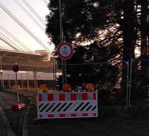 So auch die unten gezeigte Situation an der neuen A40-Brücke. Die Fahrbahn ist ein Stück befahrbar und es gibt dort auch Gebäude. Der Gehweg kann ohnehin nicht genutzt werden, wegen der Absperrung.