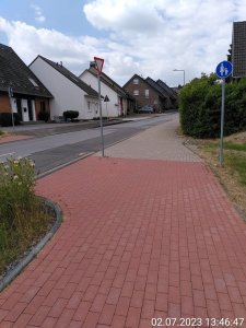 Wenn man Am Mühlenberg entlang geht, wird der Radverkehr vom getrennten Mischweg (Rad-Gehweg) quasi im 90°-Winkel auf die Fahrbahn geführt. An einer Stelle mit viel LKW-Verkehr ist das zumindest eine Behinderung des Radverkehrsfluss, wenn nicht sogar lebensgefährlich. Dass man ein Vorfahrtachtenschild in der Position aufstellt ist typisch Duisburg, denn wenn man dort ankommt, sieht man das Schild gar nicht rechtzeitig, weil es nicht in Fahrtrichtung steht. Schilder, die man nicht sieht, sind allerdings irrelevant. Vermutlich dient es nur als Alibi, damit man bei Unfällen sagen kann, dass man etwas getan hätte.