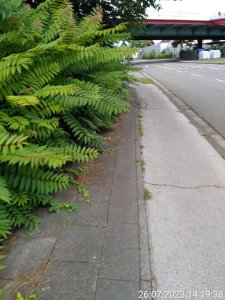 Wenn die Eigentümer das nicht machen, müssen die WBD das machen und mit Bußgeld in Rechnung stellen. Kann doch nicht sein, dass man die Grünpflege so stark vernachlässigt, dass der Gehweg nicht mehr nutzbar ist und man gefährdet wird. Für mich ist solcher Bewuchs ein gefährliches Hindernis.