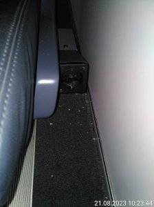 Eine Steckdose war zwar vorhanden und vermutlich war sogar zur Abwechselung mal Strom drauf, aber nutzen konnte man die trotzdem nicht. Die Steckdose war nämlich so dämlich zwischen Sitz und Wand angebracht, dass man nur mit Stecker nach vorne und nach oben hätte Laden können, bei meinem Stecker geht das Kabel allerdings zur Seite.