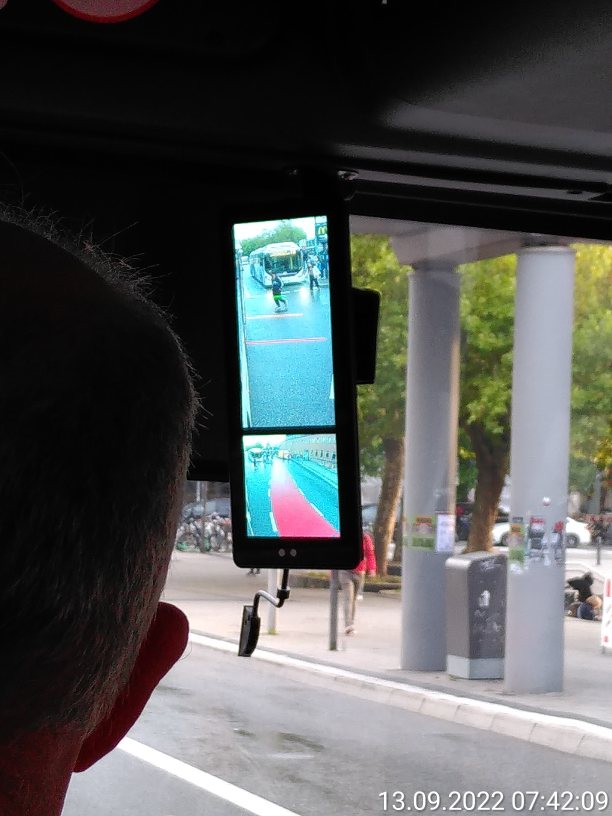 Während man in Duisburg noch an sicheren Radwegen scheitert hat man in Kiel längst Elektrobusse mit erhöhter Sicherheit für andere Verkehrsteilnehmer. Etwa in Form von E-Spiegeln, sprich Kamera und Monitore, welche den angeblichen toten Winkel ganz sicher verhindern.