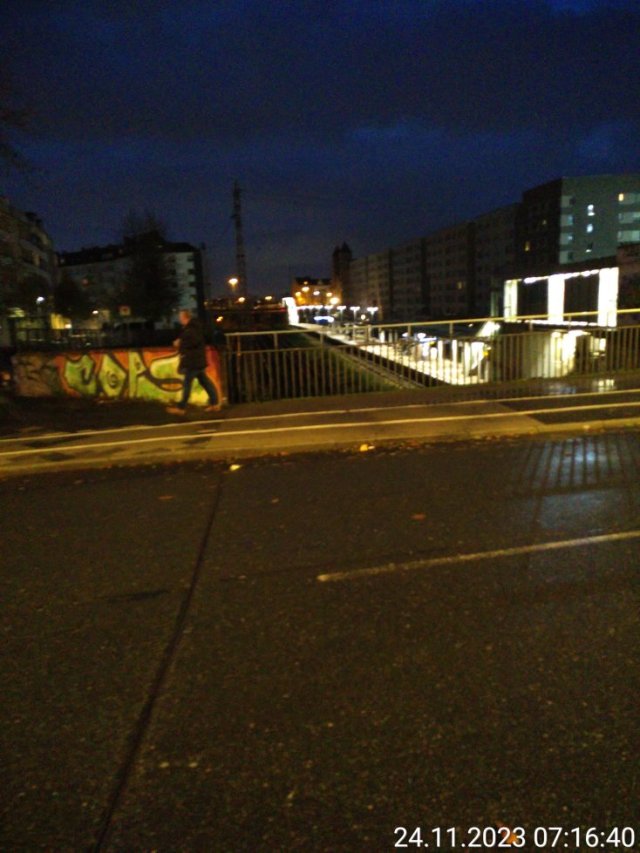 Manchmal hat man so Momente, die man einfach mal festhalten muss, das hier war auch so einer. Durch die Dunkelheit im Umfeld wirkt die Haltestelle Wehrhahn hier wie eine Lichtinsel in der Dunkelheit.