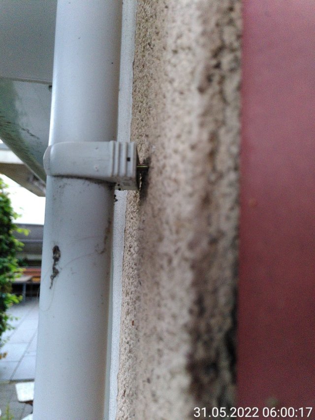Stattdessen waren die Schrauben, wie man auf dem Bild erkennen kann, so in die Wand gesetzt. Man konnte diese im Jahr 2023 so rausziehen. Fachlich gute Arbeit ist das definitiv nicht. Wenn die Klage nicht partiell an Fristen gescheitert wäre, wäre das ziemlich teuer geworden für die Firma geworden.