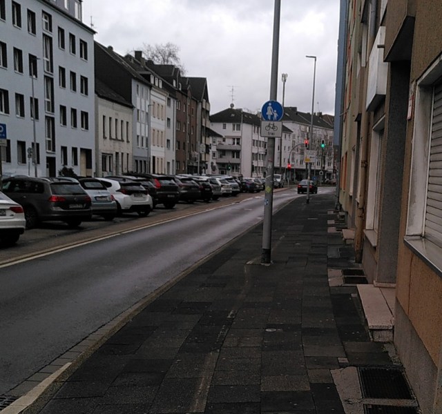 Das heißt, wenn man das nicht weiß, müsste man ab dort eigentlich mit Schrittgeschwindigkeit fahren oder über den Bordstein auf die Fahrbahn wechsel. So oder so, wird man ausgebremst. Sprich der Fahrradverkehrsfluss wird behindert. Eigentlich müsste die Stadt Duisburg von sich aus etwas tun, aber das ist natürlich unwahrscheinlich. Und wenn man die Stadt darauf hinweist, kommen vermutlich nur die üblichen Ausreden. Fakt ist, aber der Kreuzung mit der Mercatorstr. darf man auf der Fahrbahn fahren, egal welche Beschilderung dort ist und wenn es die KFZ entschleunigt, dann ist das halt so. Überholen dürfen die dort nicht. Wenn man sich natürlich zu dicht an den Bordstein quetscht kann es durchaus passieren, dass KFZ sich rechtswidrig vorbeidrängen.