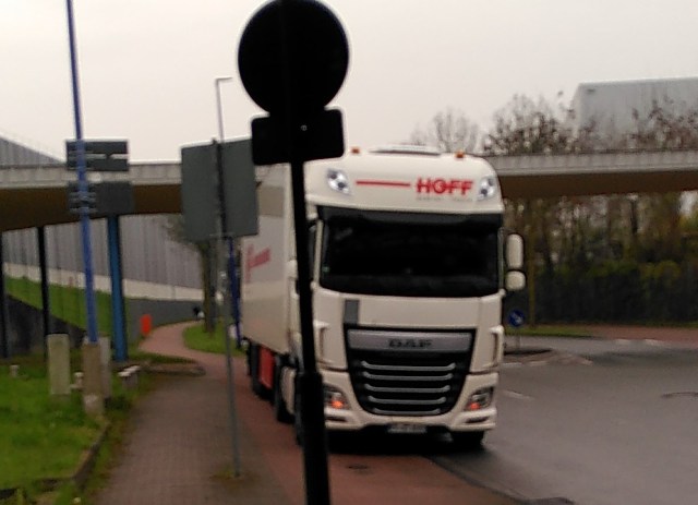 Vom Logo her ist das Fahrzeug der Firma Hoff Transporte zuzuordnen. Mir stellte sich da die Frage, ob es Firmenphilosophie ist, gegen die Verkehrsregeln zu verstoßen und zu behindern bzw. zu gefährden. In dem Fall ist zwar eine Gefahr vorhanden, diese ist aber gering. Anders sieht es da bei so Sachen, wie überhöhter Abbiegegeschwindigkeit, da ist die Gefährdung schon deutlich größer. Ich weiß zwar nicht, ob das da auch so läuft, aber wer kein Respekt vor Verkehrsregeln und Allgemeingut hat, der hat es meistens nirgendwo.