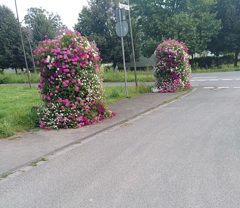 An der Diegardtstr. findet sich ein kurzer Gehweg, der zu einem Zugang in den Diegardt Park führt. Der Gehweg wird zwei von diesen Blumenständern blockiert. Da fragt man sich sofort, wer die Aufstellorte für diese nervigen Blumständer plant, die entweder im Weg sind oder Sichtachsen, für die Verkehrssicherheit blockieren.