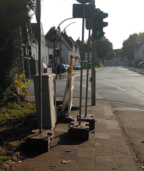 Und wie üblich blockiert man natürlich den Gehweg mit Schildern nahezu vollständig, sodass das definitiv keine 1 m Mindestbreite bleibt. Auch das natürlich rechtswidrig aber solange es nicht die Fahrbahn blockiert hat es in Duisburg keine Konsequenzen.