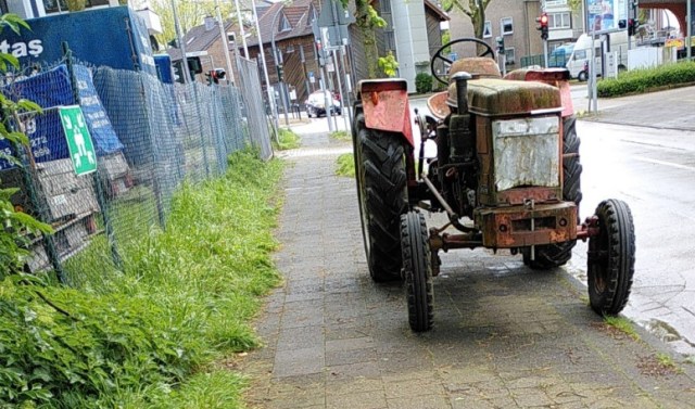Wenn man glaubt, dass es nicht mehr dreister ginge, findet man wie hier an der Rheinstraße gegenüber # 20 in Rheinhausen einen völlig verwahrlost aussehenden Traktor ohne Zulassung für den Verkehr bzw. zumindest ohne Nummernschild abgestellt auf den Gehweg.