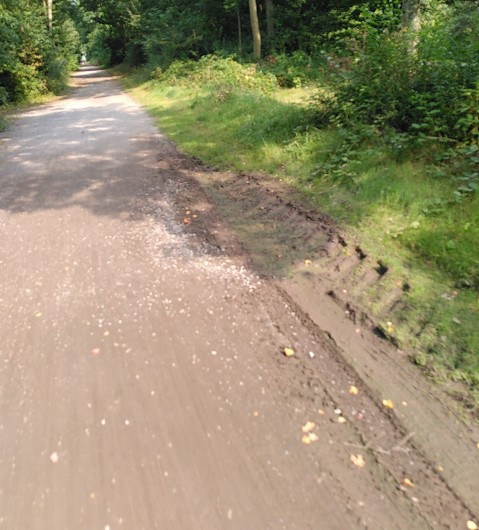 Die Anzahl der Schlaglöcher ist erheblich, obwohl das bei einer wassergebundenen Decke mit wenig Aufwand behoben werden kann. Hilfreich ist allerdings auch die Durchfahrt von KFZ zuverlässig zu unterbinden, was hier das Hauptproblem ist. Und es sind definitiv nicht nur kleine PKW, sondern auch größere KFZ, wie man an den Spuren sieht.