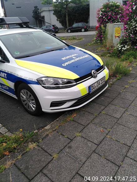 Die Rechtsprechung sagt eindeutig, dass kein Teil des Fahrzeugs ins Halteverbot ragen darf. Das Ordnungsamt ist u. a. für die Kontrolle der Einhaltung der Verkehrsregeln zuständig. Dem Ordnungsamt kommt damit automatisch eine Vorbildfunktion zu. Eigentlich. Aber die Stadt Duisburg ist ja eine Stadt, die Falschparken rechtswidrig toleriert. Da fragt man sich warum soll man sich auf dem Fahrrad oder zu Fuß an Verkehrsregeln halten, wenn die Stadt alles für Karren tut.