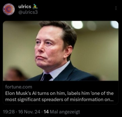 Ich hatte am 16.11. 19:28 einen Link gepostet zu einem Artikel der Musk nicht gut dastehen lässt.