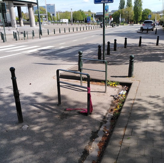 Fahrradparkplätze in Brüssel sind anders, als in Deutschland auf der Fahrbahn. Dort kommt man anscheinend nicht auf die Idee, dass Fahrräder noch den Gehweg zustellen sollen. Es gibt einfache Bügel auf der Fahrbahn.